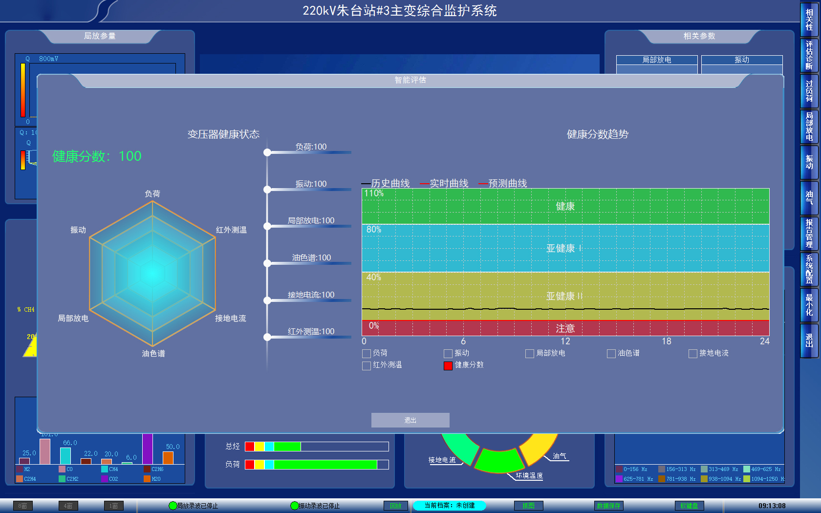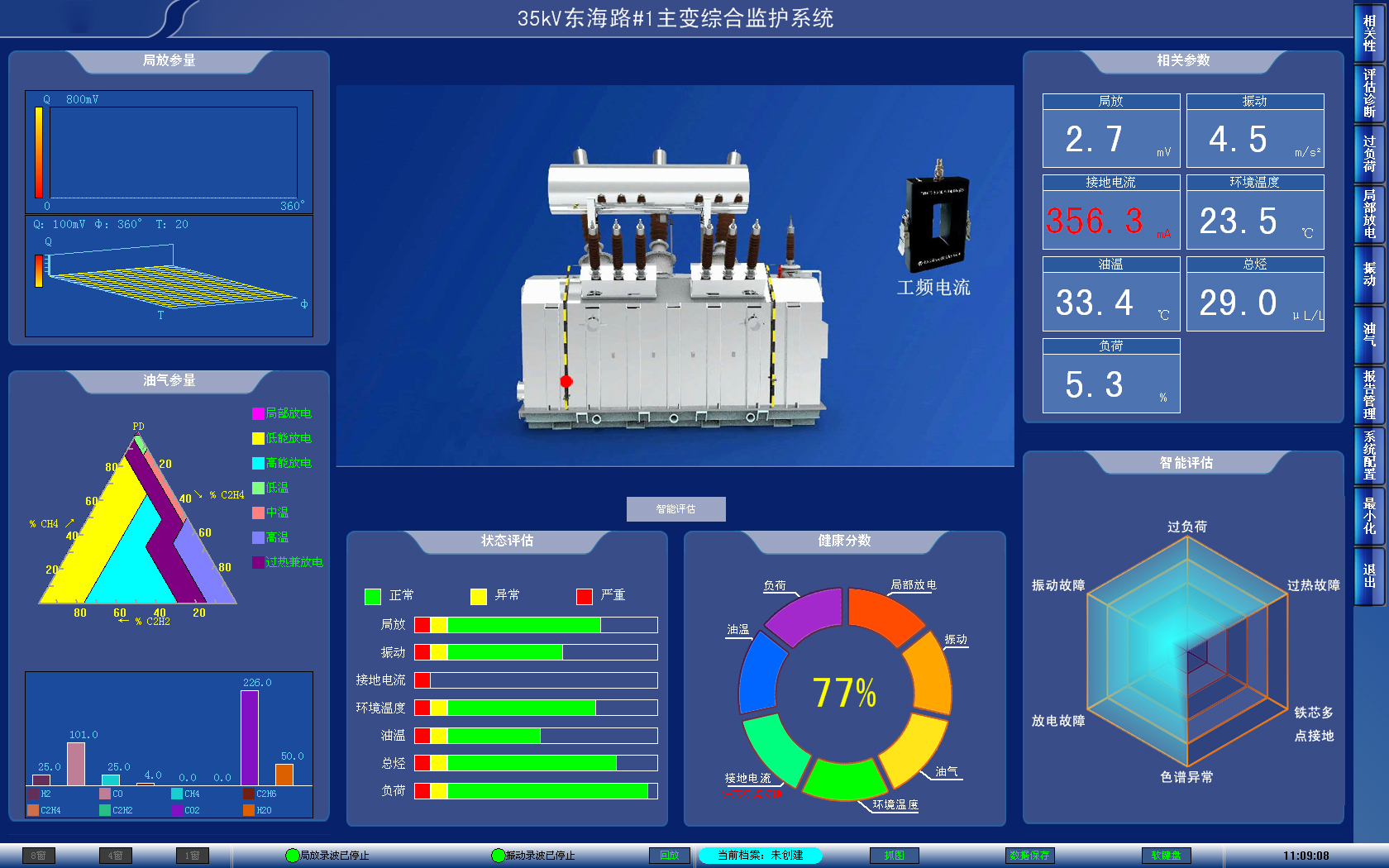 多參量實(shí)時(shí)綜合監(jiān)測(cè)和分析。整套系統(tǒng)能夠監(jiān)測(cè)變壓器的局部放電、油中氣體、溫度、振動(dòng)、接地電流等多參量實(shí)時(shí)數(shù)據(jù),并進(jìn)行綜合分析。