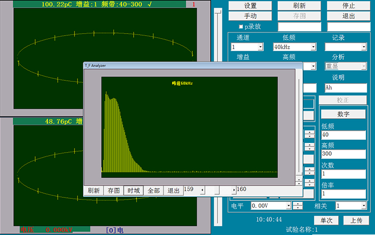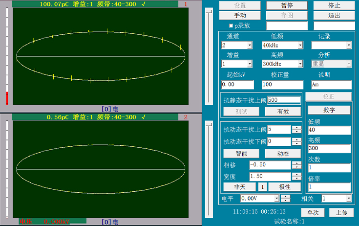 兩通道獨(dú)立采集數(shù)據(jù)(非通道轉(zhuǎn)換式),同步信號(hào)采樣,兩個(gè)窗口單獨(dú)顯示局放測(cè)量結(jié)果。