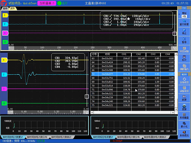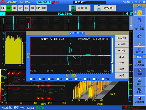 8通道高速同步采樣,每通道采樣率80MS/s,具備強(qiáng)大的放電脈沖還原能力。